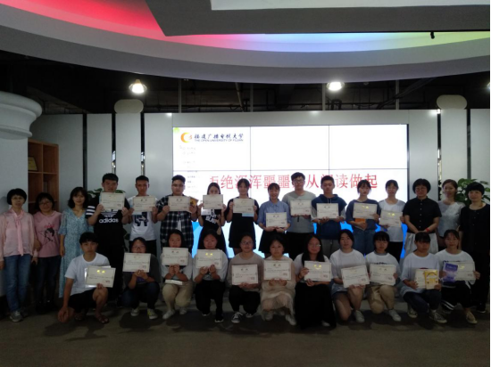 随后,资源中心徐敏主任与职业学院汪媚科长为2017-2018年度获得“阅读之星”、“英语学习之星”的同学颁发奖状、奖品,并祝愿他们再接再厉,继续做一个快乐的读书人。学生代表洪嘉宝、洪尚凤等6位同学现场与同学们分享自己的学习体会。