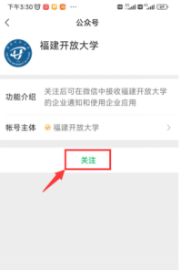 方法2:按照附件2,关注学校的企业号后,打开“微信”,在通讯录中点击“福建开放大学”。进入个人中心。